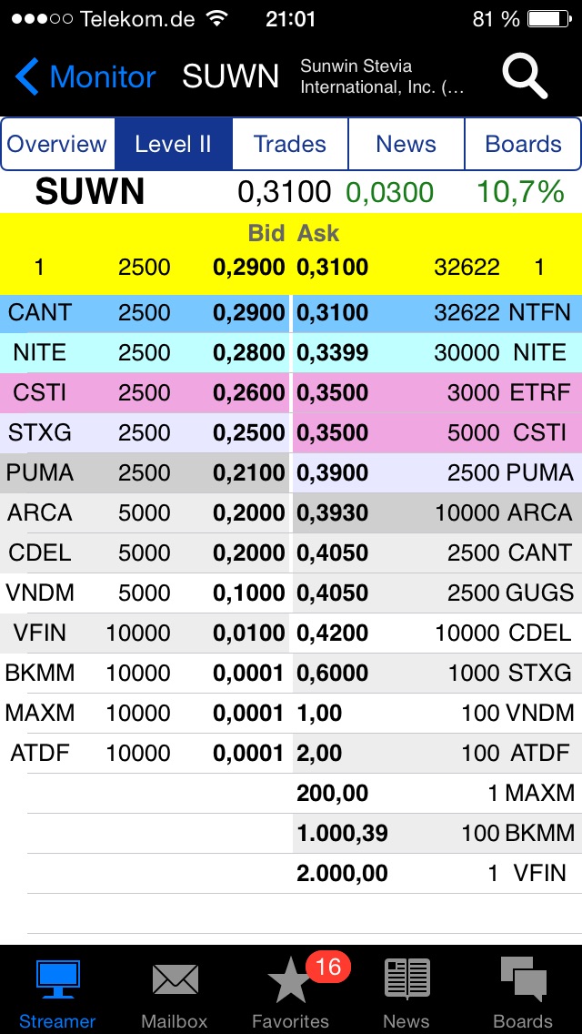 Und trotzdem regiert die Angst. Da werden selbst Anleger verunsichert, die noch zu viel riskanteren Zeiten sogar mit Kredit eingestiegen sind. Und jetzt, wo der Markt und Sunwin endlich laufen machen sich selbst langjährige Investoren in die Hose, weil sie irgendwo etwas von vllt ausbleibenden Lieferungen gelesen haben. Grotesk. Einziges Indiz für eine solch angstschürende Behauptung ist, dass Wild im Kalenderjahr mindestens 40 Tonnen abnehmen wird. 2016 dann 80 Tonnen. Und siehe da, bereits im ersten Drittel des Jahres benötigt Wild schon 2/3 der Rohstoffe. Könnte es nicht auch sein, dass am Ende sogar mehr als 40 Tonnen benötigt werden? Man geht ja von massiven Wachstumsraten aus. Siehe die 80 Tonnen 2016. Und siehe die Wachstumsraten der vergangenen Quartale. Und dieser Wachstum setzt ja nicht auf einen Schlag am 31.12.2015 ein. Und Wild ist EIN Kunde. Es gibt aber viele mehr. Und auch bzgl. der Vertriebswege können wir nur spekulieren. Und die letzten Quartale hatten wir jeweils eindrückliche Wachstumsraten. Ausschließlich und eindrucksvoll. Und das macht Angst? OK. Und wenn's ganz dumm kommt: rechtfertigt ein Quartal ohne 40% Wachstum einen Ausstieg? Wo für die Zukunft schon die nächsten 100% in Aussicht sind?