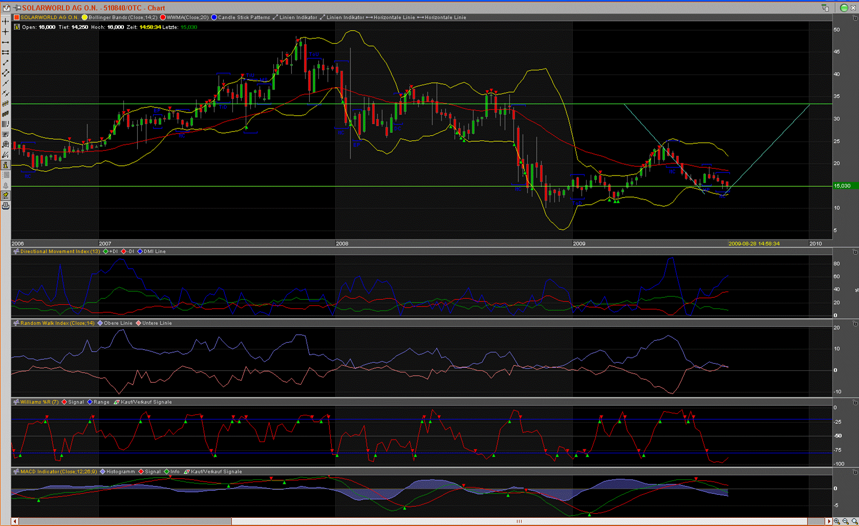 Kursverlauf vom 05.01.2009 bis 28.08.2009 (log. Kerzendarstellung / 1 Kerze = 1 Tag)