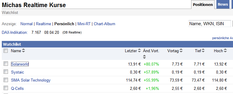 Auch dieses Nicht-Infrage-Stellen der Lithium-Meldung finde ich sehr denkwürdig! Solarworld wird kein Lithiumunternehmen werden, die fangen doch erst mal mit der Exploration an und stecken da einige Millionen rein. Also ob man Solarworld einfach so mal im Erzgebirge die Umwelt verschandeln lässt? Und die Gewinnung aus Erzen kostet einen sehr hohen chemischen Aufwand, das wird nicht einfach mal so eben gemacht! Weiterhin ist immer noch die Frage im Raum, was man mit dem lithium machen sollte? Also kauft man sich eine Batterienfabrik für mehrere 100 Mio euro dazu oder was soll das sein?