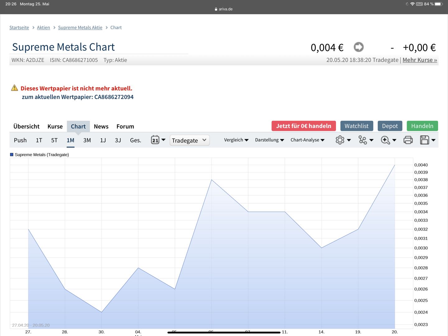 Die letzte Meldung, die zu finden ist, bezieht sich auf den angekündigten und vollzogenen 1:20 Aktientausch vom 21.05.20. Mehr gibt's nicht.