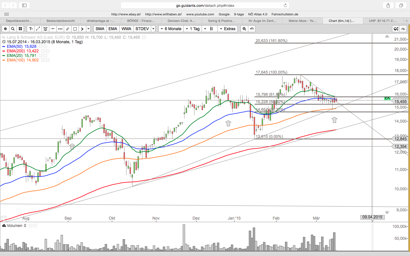 dass du wenigstens mal drüber nachdenkst, den Thread doch am Leben zu erhalten ;-) Ich habe ihn mal zur Sicherheit zu meinen Lesezeichen hinzugefügt, das hilft schon mal selber nicht darauf zu vergessen ;-) Leider kann ich mit meinem sehr beschränkten Börsenwissen als Anfänger keinem weiterhelfen, aber ich habe vor wenn ich mMn. interessante Aktien finde hier einzustellen, ich fang mal mit L&S an, bei der bin ich allerdings schon investiert, halte sie auch für langfristig gut, und jetzt ist sie gerade an einem wichtigen RT. Würde mich freuen wenn viele eine Meinung dazu kundtun.