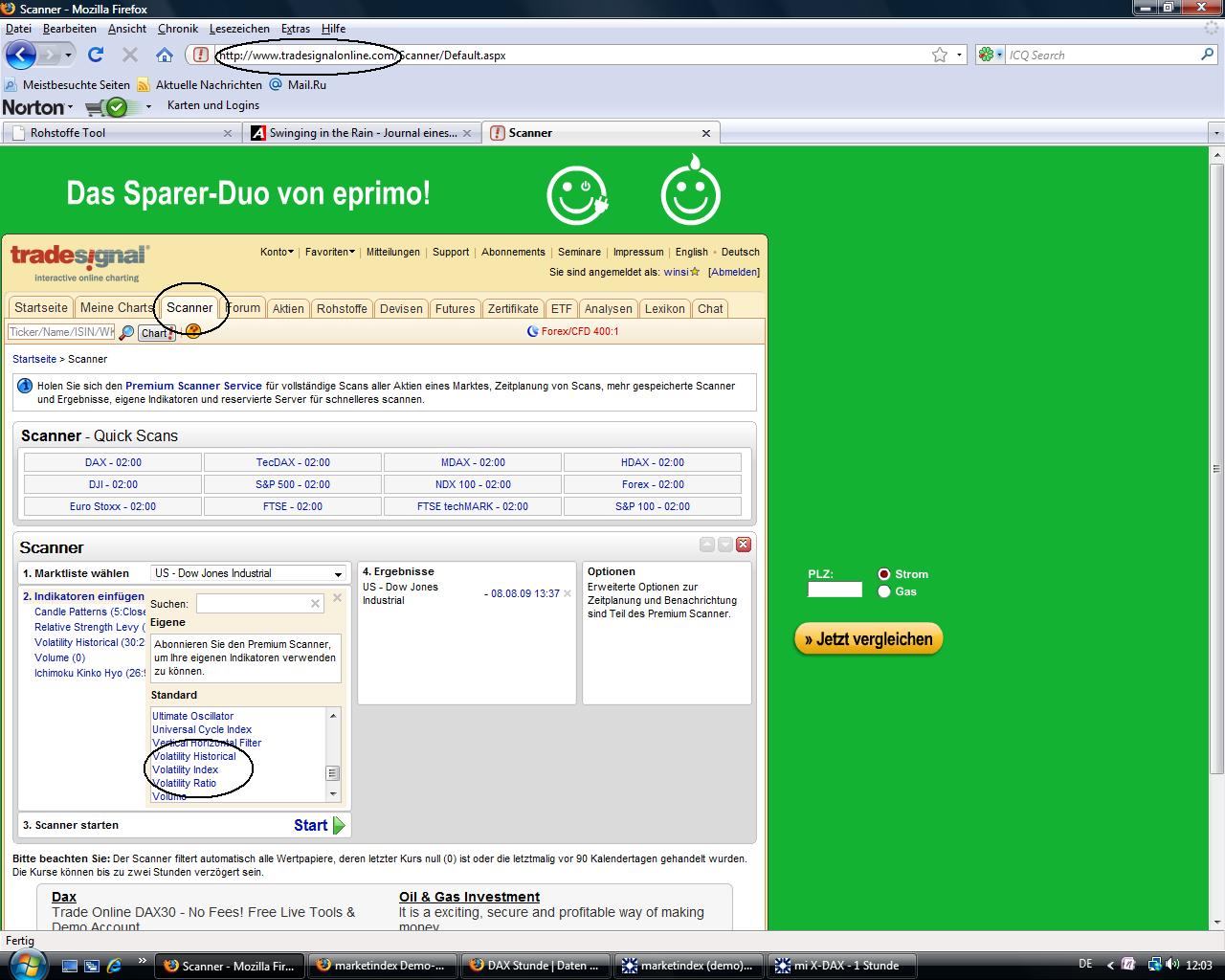Ich selber nutze ein Program zur technischen Analyse. Dort habe auch ein Scanner, wo ich den Markt nach bestimmte (von mir definierten) Kriterien durchsuchen kann. Habe mal im Bild gezeigt.