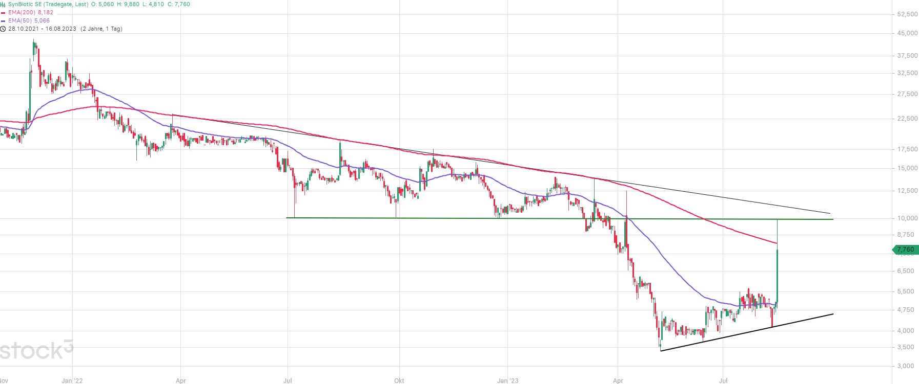 Insiderinformation gem. Artikel 17 MAR (Ad hoc-Mitteilung) NICHT ZUR DIREKTEN ODER INDIREKTEN VERÖFFENTLICHUNG ODER VERBREITUNG INNERHALB DER BZW. IN DIE VEREINIGTEN STAATEN VON AMERIKA, AUSTRALIEN, KANADA ODER JAPAN ODER INNERHALB EINER BZW. IN EINE SONSTIGE RECHTSORDNUNG BESTIMMT, IN DER EINE SOLCHE VERÖFFENTLICHUNG ODER VERBREITUNG UNZULÄSSIG WÄRE. ES GELTEN WEITERE BESCHRÄNKUNGEN. SynBiotic SE: Durchführung einer Sachkapitalerhöhung beschlossen. München, 24. Juni 2023 – Die SynBiotic SE hat heute mit einem Darlehensgläubiger der Gesellschaft eine Vereinbarung geschlossen, wonach dessen Darlehensforderung in Höhe von ca. EUR 912.000,-- im Rahmen einer Sachkapitalerhöhung gegen Gewährung von 227.900 Aktien in die Gesellschaft eingebracht wird. Die Gesellschaft beabsichtigt daher das Grundkapital der Gesellschaft unter Ausnutzung des Genehmigten Kapitals 2022/I von EUR 4.677.379,00 um EUR 227.900,-- auf EUR 4.905.279,- gegen Sacheinlagen durch Ausgabe von 227.900 neuen, auf den Namen lautenden Stückaktien mit einem anteiligen Betrag des Grundkapitals von EUR 1,00 je Aktie zum Ausgabebetrag von EUR 4,00 je Aktie („Neue Aktien“). Das Bezugsrecht der Aktionäre wird ausgeschlossen. Die Sachkapitalerhöhung soll zeitnah umgesetzt werden.."