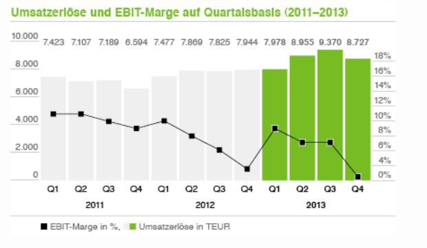 So schnell ändern sich die Dinge. Die aktuelle Nachricht vermeldet einen Gewinnsprung auf 0,14 Euro/Aktie im ersten Quartal! Eine Umsatzsteigerung um 39%!