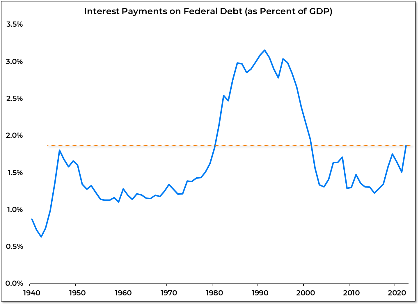 For nearly two decades up until 2018, a combination of relatively small federal deficits and low interest rates meant that the US government was paying less than 1.5% of its GDP on payments tied to its debt. That figure has since jumped to 1.9%, and BofA hints that it will continue to rise.