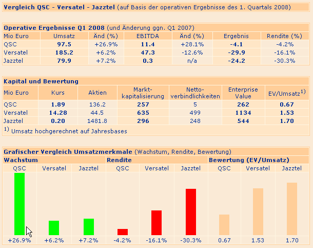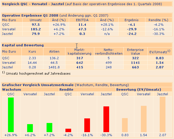 Dann hat QSC immerhin noch viel besser marchiert als Versatel (Umsatzwachstum, EBITDA wachstum, Rendite).