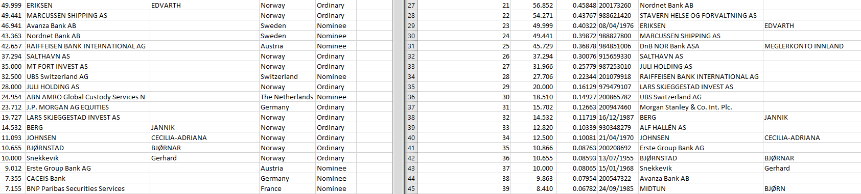 Ich hoffe sehr, dass Hansen Consult heute mehr als 25.000 Stück abgestoßen hat (Volumen in Oslo gerade 31k, Tradegate 40k), damit dieser Ausverkauf von ihm ein Ende. Gestern gab es in Oslo gerade mal ein Volumen von 31.000 und davon waren 24.000 Stück nur der Hansen, das tut weh.