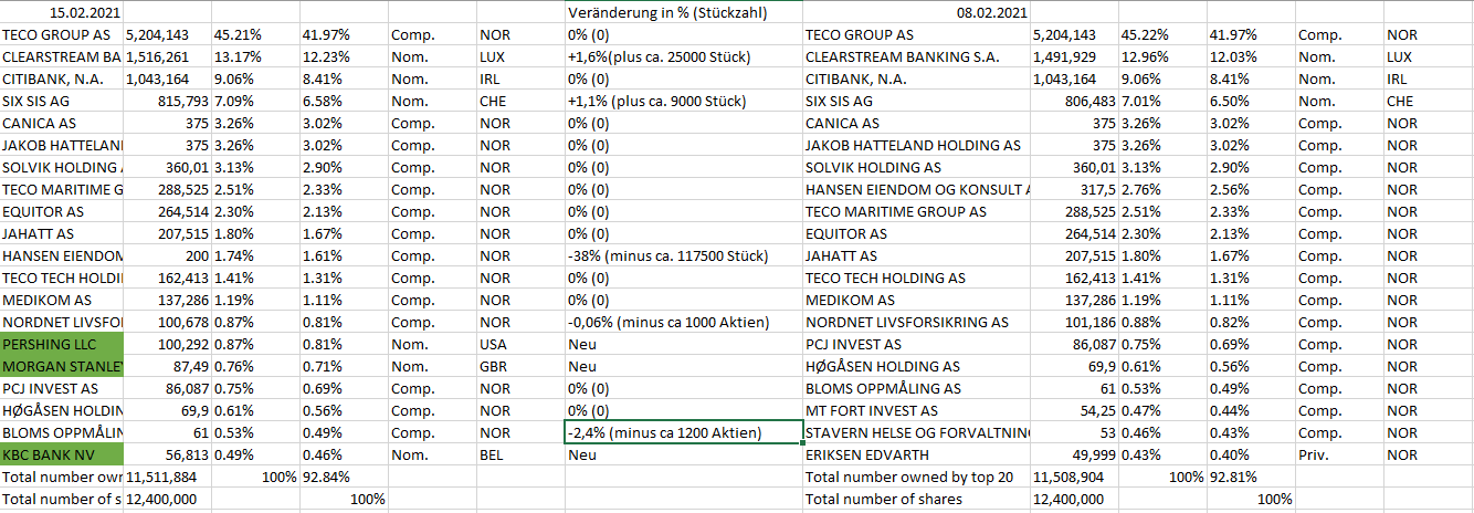 Letztlich haben wir auch das Kursziel von Fearnley Securities (95 NOK) um Längen geschlagen. Ist halt ein sehr positives Momentum und Teco versucht sich in einem riesigen Markt zu etablieren.