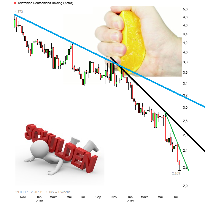 Dazu keine Einsicht die Nettofinanzschulden von weit über 4 Mrd. zu reduzieren/einzubremsen, sondern man fährt den risikosteigernden Kurs die Schulden auszuweiten. Leider wird man so noch weiter auf ungesunde Weise ausgequetscht durch die spanische Mutter, was auf Dauer Kursverfall und vermutlich neue Allzeittiefs bedeutet für den Schuldenriese. Der Vorstand ist nur ein harmloser Hampelmann, der seine Befehle aus Madrid bekommt. Der Kurs scheint den Spaniern egal zu sein, da die nur Divi im Kopf haben beim ausquetschen. Aber irgendwann ist dann der Saft der Zitrone auch am Ende .