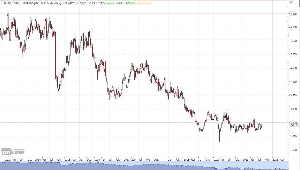 dauert, bis sich der Druck nachhaltig nach oben entlädt. Die Aktie befindet sich seit gut 2 Jahren in einer Bodenbildungsphase die bald abgeschlossen sein sollte. Schließt die Aktie auf Monatsbasis oberhalb von 2,80 EUR sollte das erst der Startschuss für eine nachhaltige Trendwende sein. Wobei der Bereich 3,50 EUR die erste wirkliche Hürde sein dürfte. Da der letzte Abverkauf jetzt recht zügig gekontert werden muss um diese Annahme zu stützen, das die Aktie in Kürze durchstartet, bin ich gespannt wo wir nun 31.08.21 unseren Schlusskurs haben werden. Kurse im Bereich 2,20-2,30 EUR sind willkommene Einstiege die aber immer unwahrscheinlicher werden.