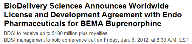Roth Capital bewertet alleine diesen DEAL mit Endo mit 2-3 Dollar pro Share für BDSI.