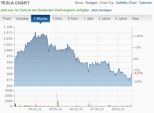 Deine Einschätzung, dass es gesund ist, wenn Tesla in irdische Regionen zurückkommt, teile ich im Prinzip ja. Klein ist die Korrektur allerdings nicht und es ist offen, wann sie abgeschlossen sein wird, wie tief es gen Süden noch geht. Ich würde sagen, es wird gerade getestet, ob die psychologisch wichtige 1000 Dollar Schwelle einen echten Widerstand darstellen. Schaun wir mal, ob die 1000 Dollar heute unterboten werden oder ob der Kurs weiter stürzt.
