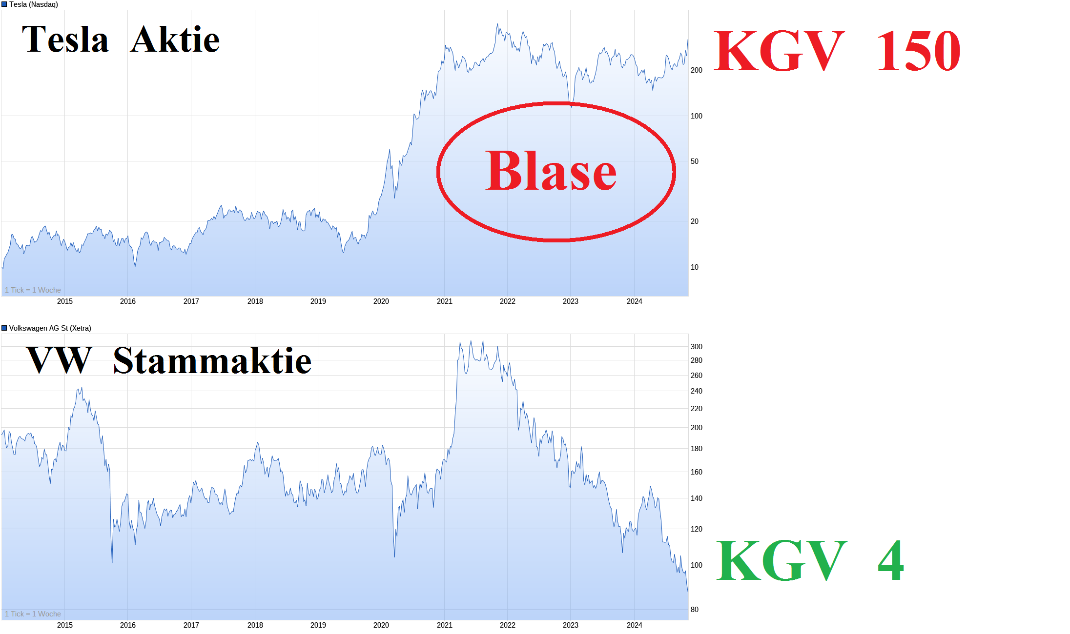 Für mich ist VW insofern interessant, weil sie mit ihren vielen Marken alle Marktsegmente und Weltregionen abdecken wie kein anderer Autokonzern, und man deshalb aus ihren Geschäftsberichten ganz gut Trends ablesen kann, die die ganze Automobilindustrie betreffen, und damit auch Tesla.