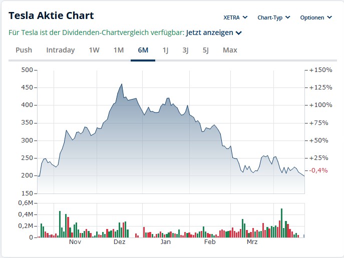 Tesla Aktie 199,36 EUR -11,59 EUR -5,49 % 11:24:21 XETRA