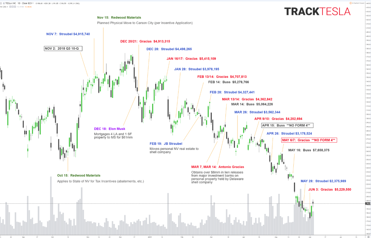 Da sieht man schön wie Straubel, Garcias und Buss seit Ende letzten Jahres beginnen Ihre Anteile abzuwerfen. Selbst Straubl und Garcias noch bei einem Preis von USD 210. Die rechnen durch ihre Insights sicherlich damit dass das Papier Ende des Jahres wieder bei USD 330 steht, darum verkaufen sie zum all time low.