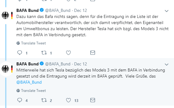 "Vielleicht weigert sich deshalb die Bafa bisher, das Model 3 auf die Liste zu nehmen."