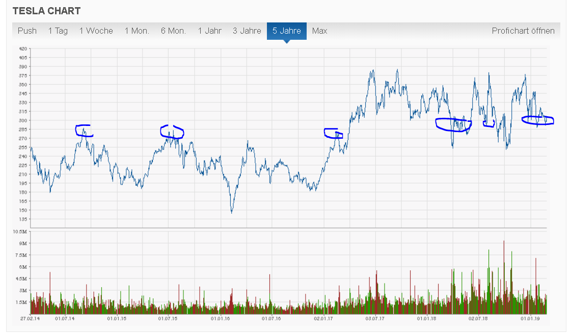 Schau mal hier den Chart an, Tesla in Dollar. Also wer da eine Unterstützung nicht sieht, eine Marke oder nenne es wie du willst, der hat halt eine andere Herangehensweise und das ist auch vollkommen ok, für mich zumindest.