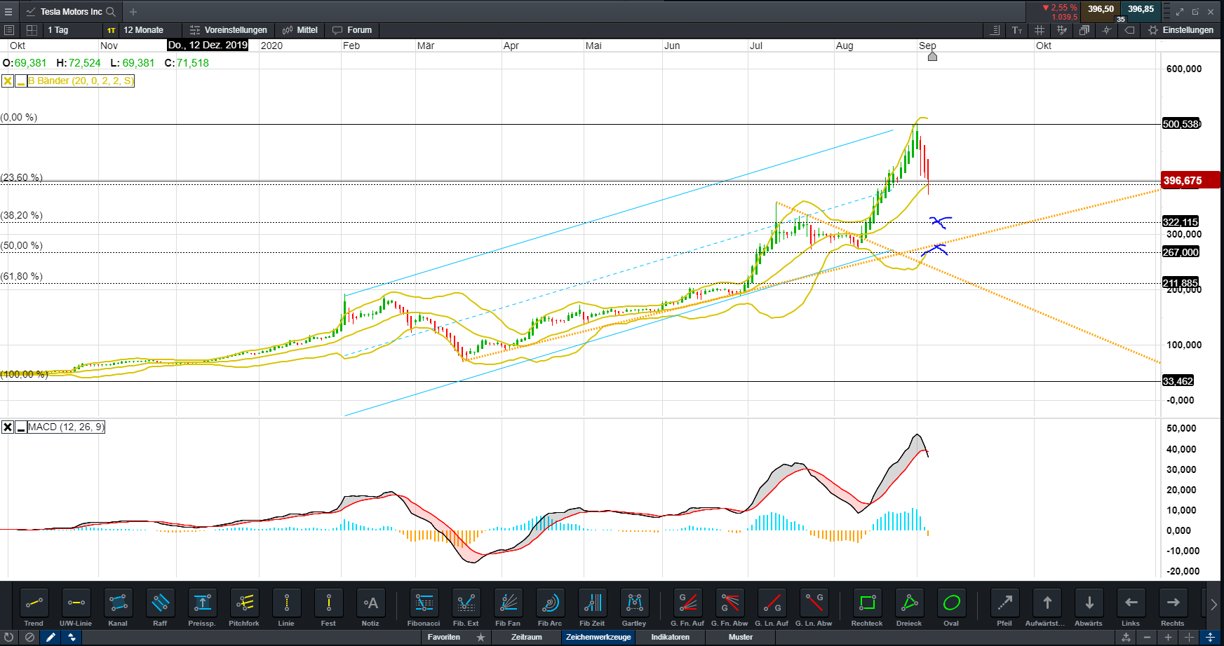 TESLA ist eine Wachstums- und Hoffnungsaktie. Das zukünftige Wachstum bei einem Aktienkurs von 500 Dollar muss enorm sein, und bietet eben solches Abwärtspotenzial. Vielleicht ist das Abwärtspotenzial bereits größer als das Aufwärtspotenzial der Aktie?