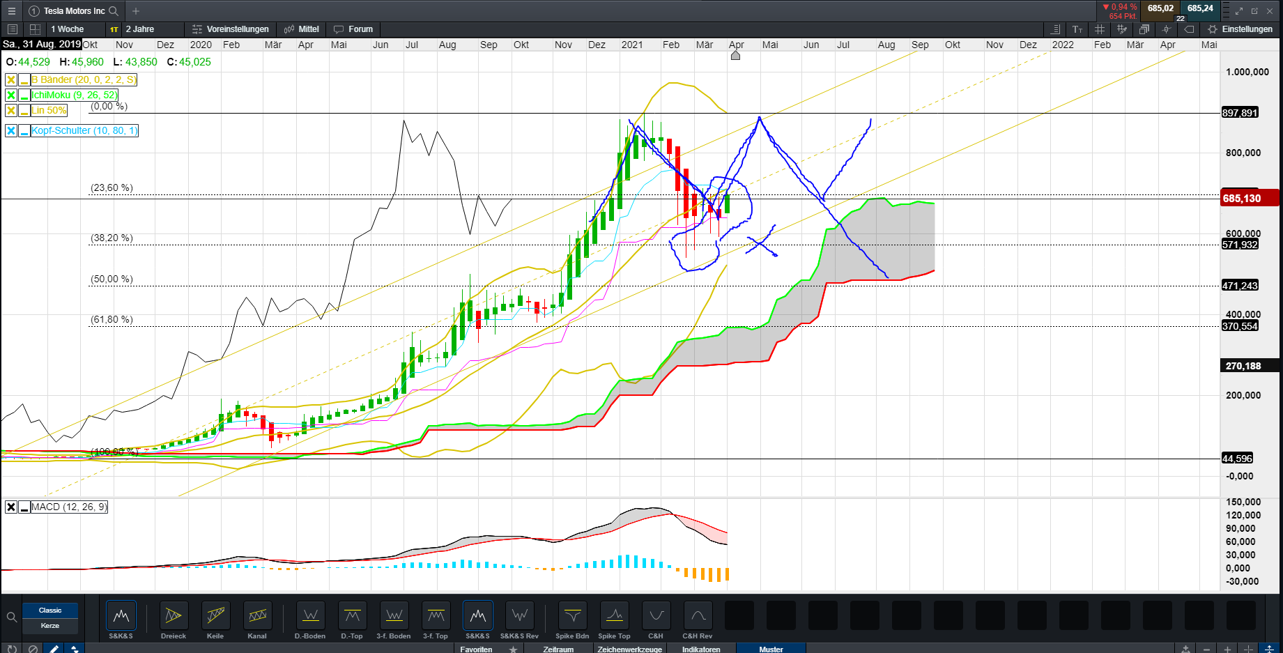 Ich habe erfahren, daß Tesla kein Automobilhersteller sondern Technologieunternehmen ist. Du musst als Peergroup Sowas wie Apple, Google nehmen. Da haste dann ca. den selben Verlauf;)