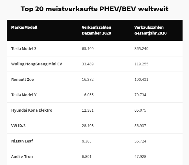 *Weltweit stiegen die Zulassungszahlen gegenüber dem Jahr 2019 um 43 Prozent. Ihren Anteil am Gesamtmarkt konnten die Elektriker damit deutlich steigern, er stieg auf 4,2 Prozent an. Das starke Wachstum in Europa führt dazu, dass diese Region den bisherigen Spitzenreiter China als wichtigster Elektro-Markt auf Platz zwei verwiesen hat. 1,34 Millionen BEV und PHEV wurden 2020 in China neu zugelassen, 1,4 Millionen in Europa. Dabei hat vor allem der Boom in Deutschland für das Wachstum gesorgt: Mit rund 398.000 Neuzulassungen von extern aufladbaren Fahrzeugen liegt Deutschland nun auf Platz zwei weltweit. Zum Vergleich: USA rd. 328.000 PHEV/BEV, der zweitgrößte europäische Markt ist Frankreich mit rund 194.000 Einheiten, das Elektroauto-Musterland Norwegen kam 2020 auf rund 108.000 Neuzulassungen.*