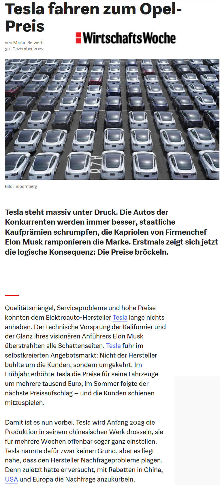 TESLA SPIELT IN FOLGENDER LIGA - Sorry, Winti mehr ist nicht - Du bleibst nach der kalten Ernüchterung über den brutalen Kurszusammenbruch im Panic Mode. Das Fiasko setzt sich 2023 weiter fort.