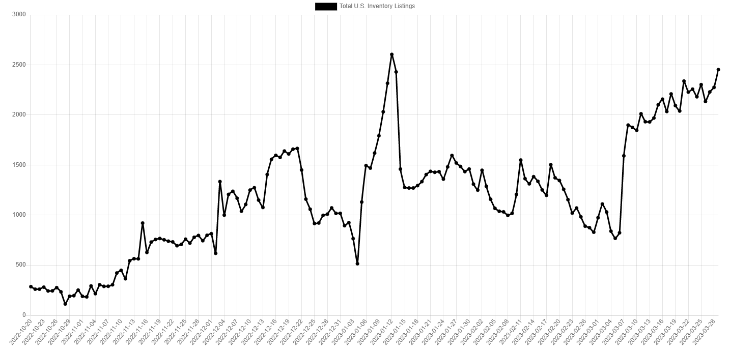 die Aufnahmefähigkeit des Marktes, zudem in dem Preissegment, ist begrenzt, wie ein Schwamm der irgendwann gesättigt ist. Tesla hat Q1 massiv gedrückt ,mit massive Preissenkunken und Goddis on Top, das gab einen kurzen Abverkauf aber die Inventory steigen weiter. Ich sehe hier schlechten Ausblick für das nächste Quartal.