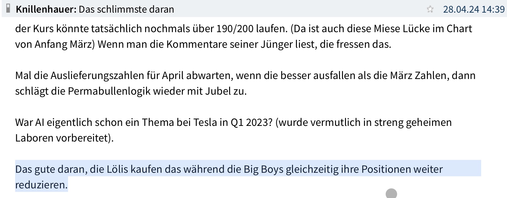 Bei Tesla wird so einiges jetzt optimiert, damit sie wieder positiven Cashflow haben. Vieles nagetives war im Kurs drin.