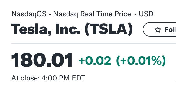 Wenn aber beispielsweise eine Citadel den Tesla-Kurs morgen bei 180 US$ haben wollte, dann wäre der Kurs morgen bei Schluss auf 180.00 US$.