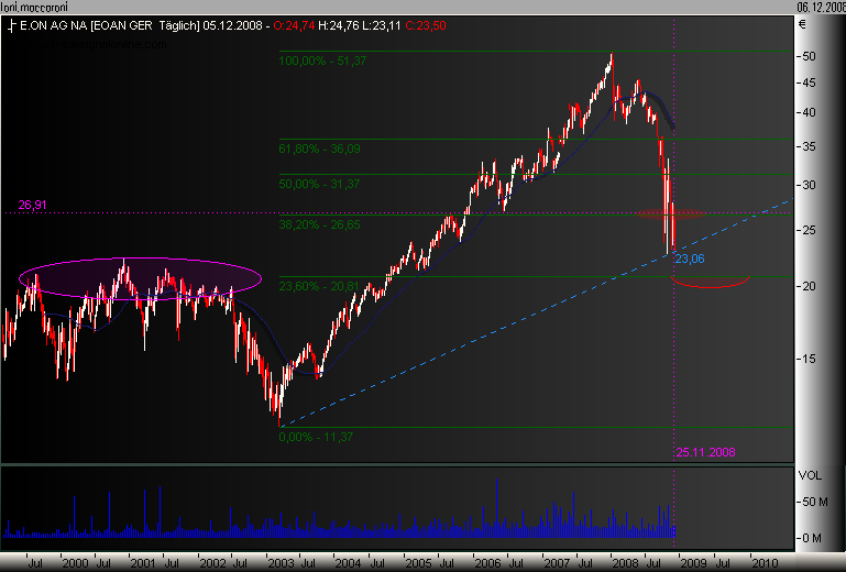 in diesem bereich anfangen Positionen aufzubauen bis knapp unter 20€, starker Widerstands bereich aus den Jahren 2000-2002 lockt mehr Käufer...