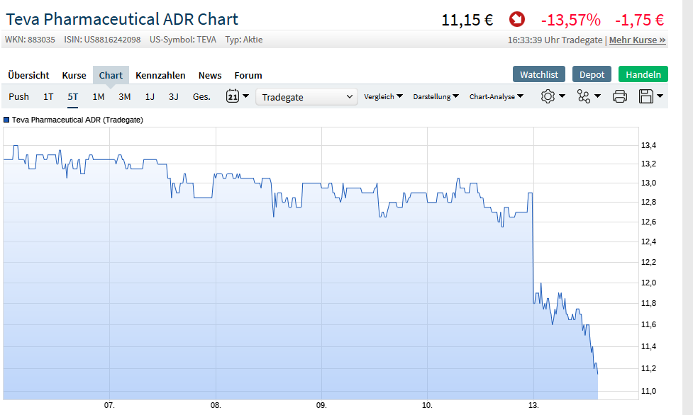 Ich hätte Teva bei über 20 USD stärker reduzieren sollen, einfach weil der Grenznutzen auf diesem Niveau doch stark zurückgegangen ist, wenn man die Zeit berücksichtigt, die die Schuldenreduktion benötigt und damit weitere Kurssteigerungen. Aber den Titel auf den aktuellen Niveau nicht zu halten bzw. kaufen, wäre auf Basis MEINER Investmentstrategie der größere Fehler. ;) Weitere Kursverluste mögen mir eine deutliche Delle ins Depot hauen. Damit kann ich aber leben, weil ich ziemlich genau weiß, was ich mir ins Depot gelegt habe und wo ich den Titel in 10 Jahren sehe. Von mir aus kann es einstellig werden. Dann schichte ich eben alles in Teva um. Dann könnt ihr euer Nasenspray direkt bei mir kaufen. ;)
