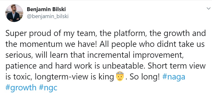 "NAGA is growing! We had steady growth month over month with June as the strongest month of Q2." ???
