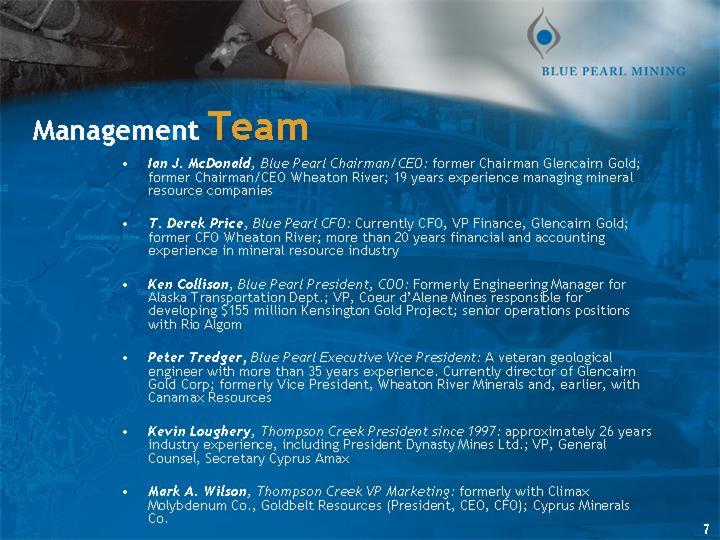 wenn ihr mich fragt, genau die richtigen für unsere perle!! und bislang absolut zufriedenstellende arbeit. mal abgesehen von dem riesen-ding mit thompson-creek finde ich auch die informationspolitik und das auftreten des managements absolut positiv.