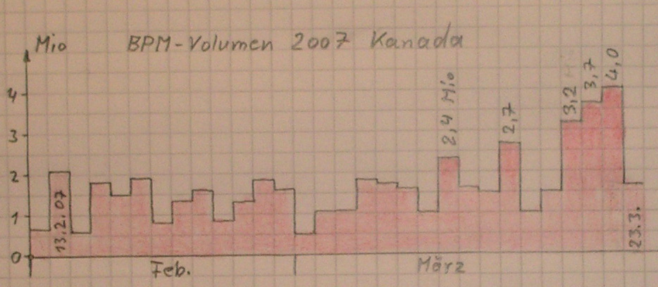Im Mai gibt es dann Daten für das 1. Quartal 2007. Wenn der Moly-Preis weiterhin bei 30 USD liegt (und Blue Pearl verkauft ja angeblich derzeit das Moly für 33-34 USD je Pfund!), dann dürften die Analystenschätzungen nach oben revidiert werden.