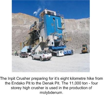 sie haben diese woche einen 11.000 Tonnen schweren Inpit-Crusher (Zerkleinerer für Erz) aus der Endako in die Denak West Pit bewegt. allein die fahrt über 8 km dauerte 5 tage  siehe dazu das Bild unten und eine ausführliche Info unter: