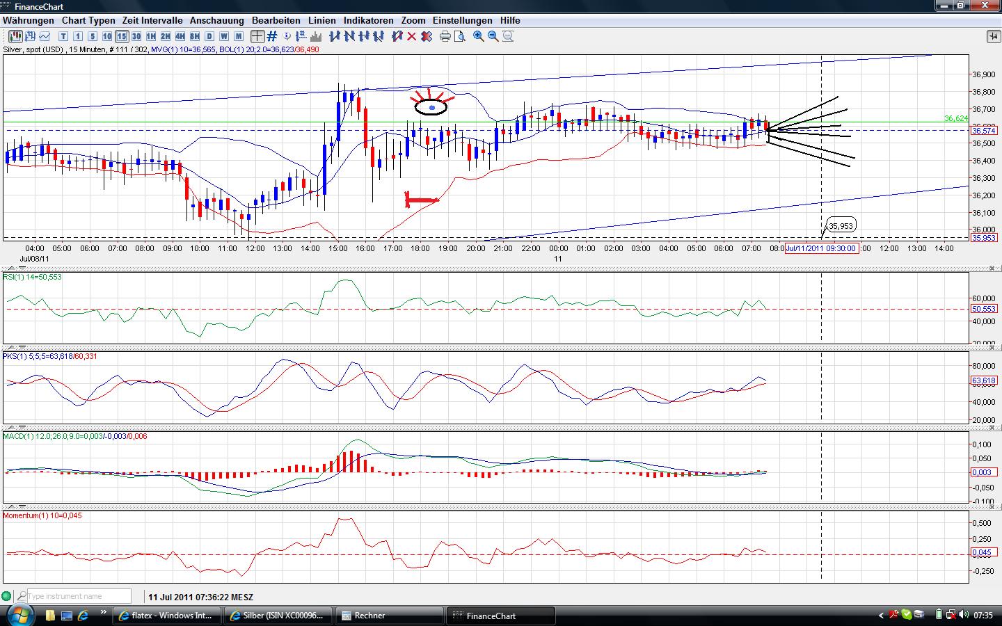 Dennoch kann man hier (:www.godmode-trader.de/Silber/Silberpreis/Korrelationen) schön erkennen, wie merwürdig wenig korrelativ silber doch in letzter Zeit ist und, dass die Korrelation zu Gold stark verlloren gegangen ist. So hat es mich v.a. am Donnerstag aus den Socken gehauen, dass Silber noch weit über den 36 war, während Gold bereits wieder ein paar Dollar unter den 1530 war. Dabei haben die beiden freunde die Marken gleichzeitig überschritten...