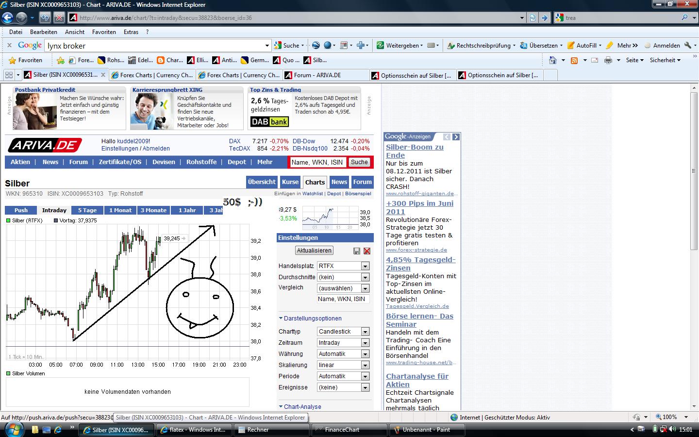 na klasse. Da dachte ich mir gegen 21:00 wirds wieder ruhig und die Kurse werden leicht anziehen - etwas nachgekauft - nach einer Minute ein 20 Cent Drop. Ich könnte kotzen. Warum kann ich nicht mal zum optimalen Zeitpunkt traden..... das ist mit ein Grund warum ich lieber über längere Zeit halte anstatt ständig zu kaufen und zu verkaufen.