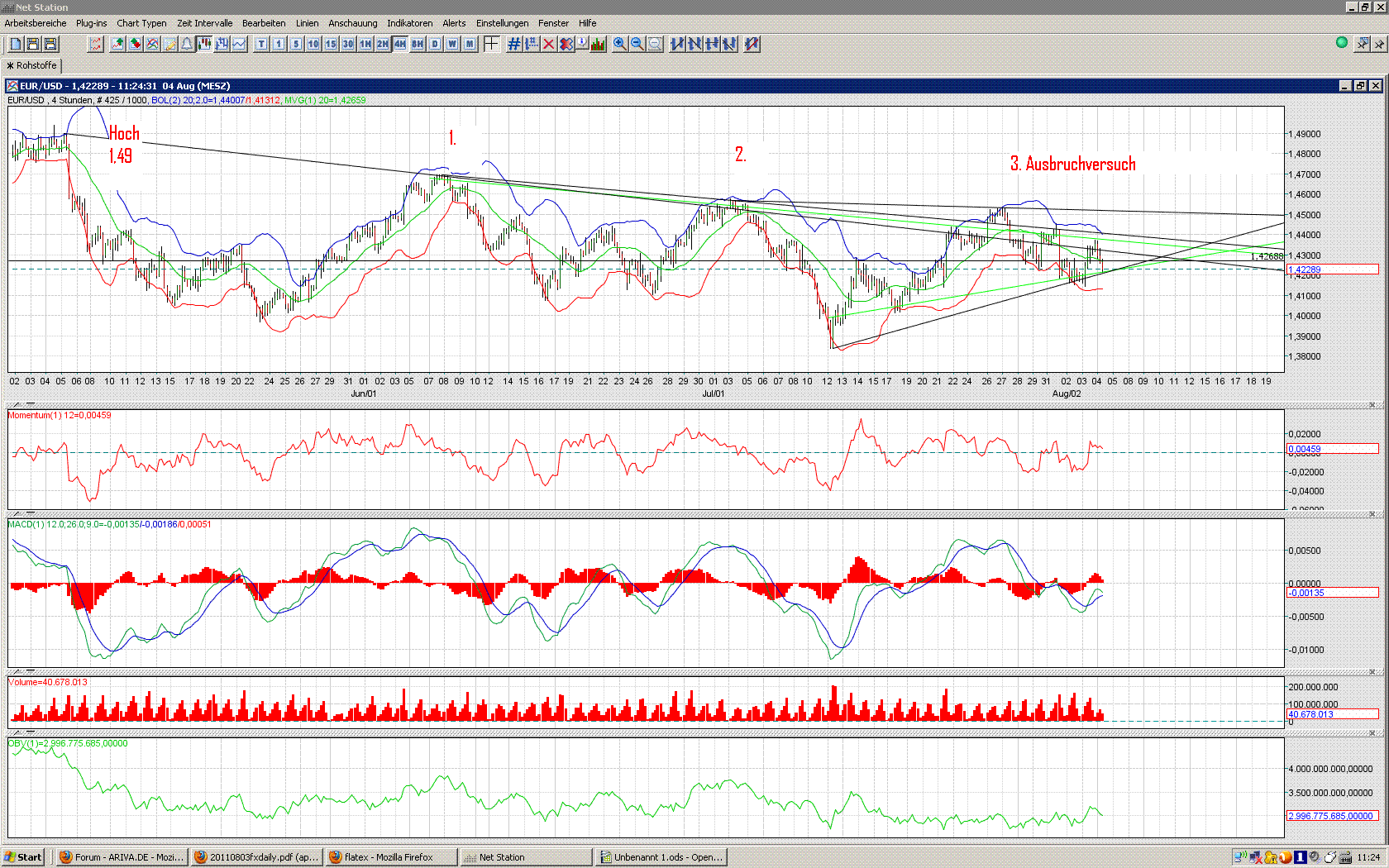 EUR/USD befindet sich seit dem Hoch bei 1,4939 USD vom 04. Mai 2011 in einer Konsolidierung. Im Rahmen dieser Konsolidierung