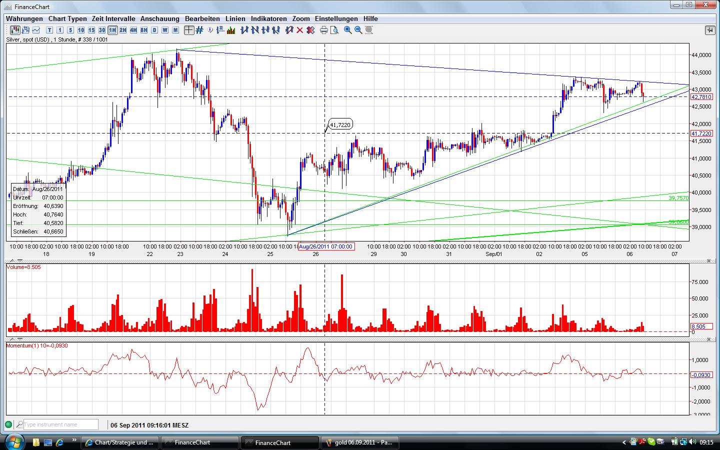 Meiner Meinung nach wurde Gold und Silber die letzen Tage von den starken Indizes unten gehalten und der Ausbruch heute ist auf die schwachen Indizes zurückzuführen. Wenn Dax &Co wieder ins Plus drehen könnten unsere Edelmetalle gleich wieder unten sein. Wenn die Indizes für die nächsten Tage neue Tiefpunkte ansteuern könnte es bei Gold und Silber SEHR schnell nach oben gehen.