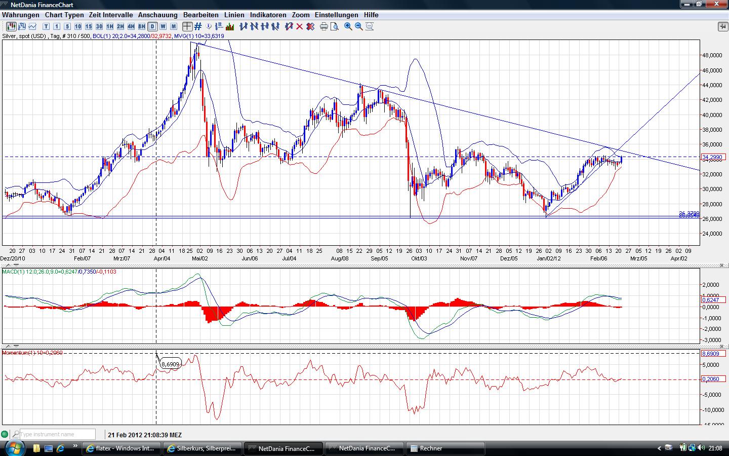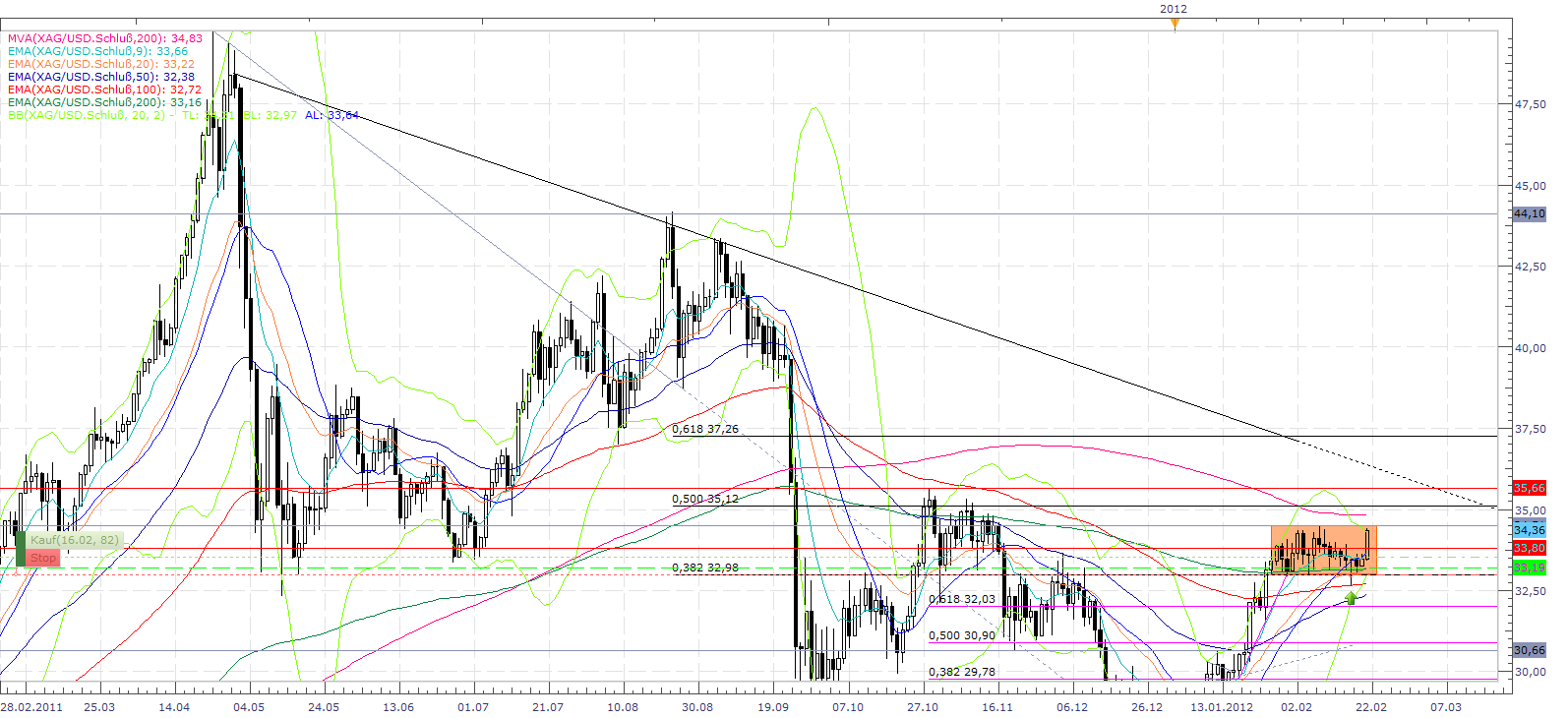 Bei Silber sollten wir erst die 33,60$ knacken bevor es bis zum nächsten Ziel bei ca 34,60$ frei wäre..