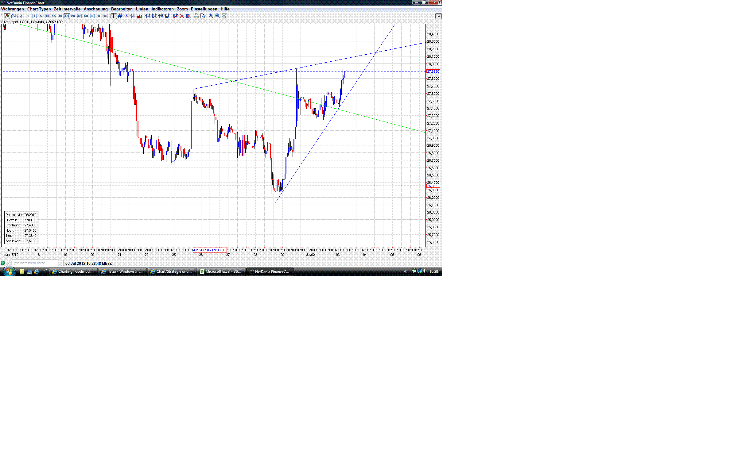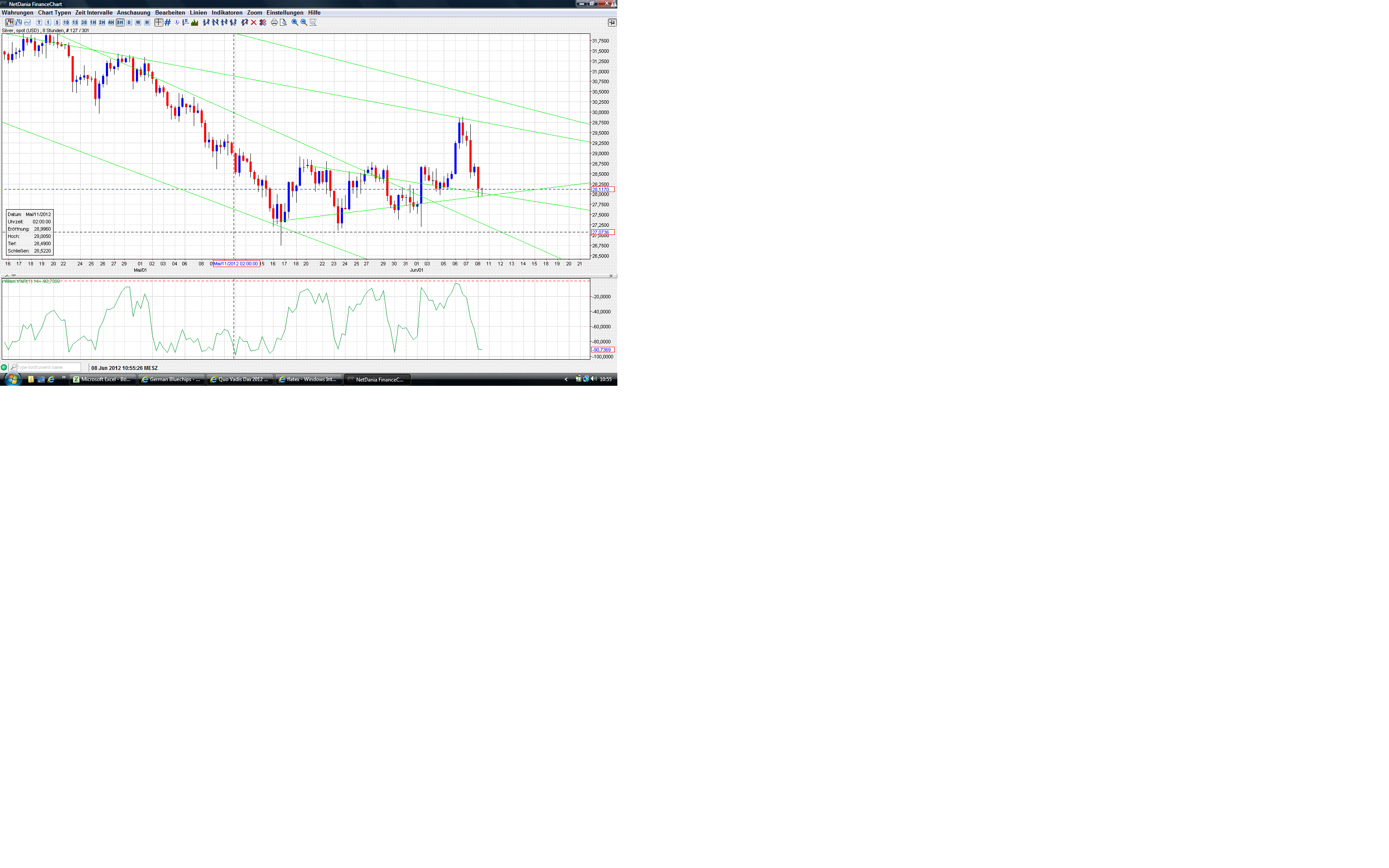 @Rebils315: Wenn die US-Märkte offen sind, schau ich unter www.freestockcharts.com/ da kann man das gehandelte Volumen im SLV und GLD einsehen.