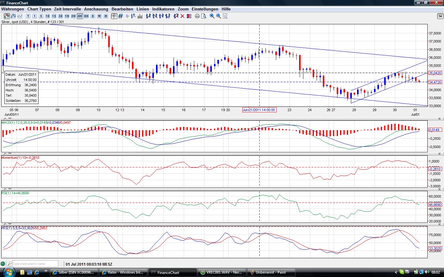 Will langsam auch wieder verstärkt mit Silber handeln. Die letzten Wochen war ich doch lieber bei anderen Rohstoffen aktiv. Ich denke die Bodenbildung hat bei 33 eingesetzt und ich kann mir nicht wirklich vorstellen, dass es noch tiefer gehen wird. Meine erste Kauforder für heute habe ich bei 33,90. Evtl. korrigiere ich noch ein wenig nach unten, je nachdem wie der Kurs heute verläuft.