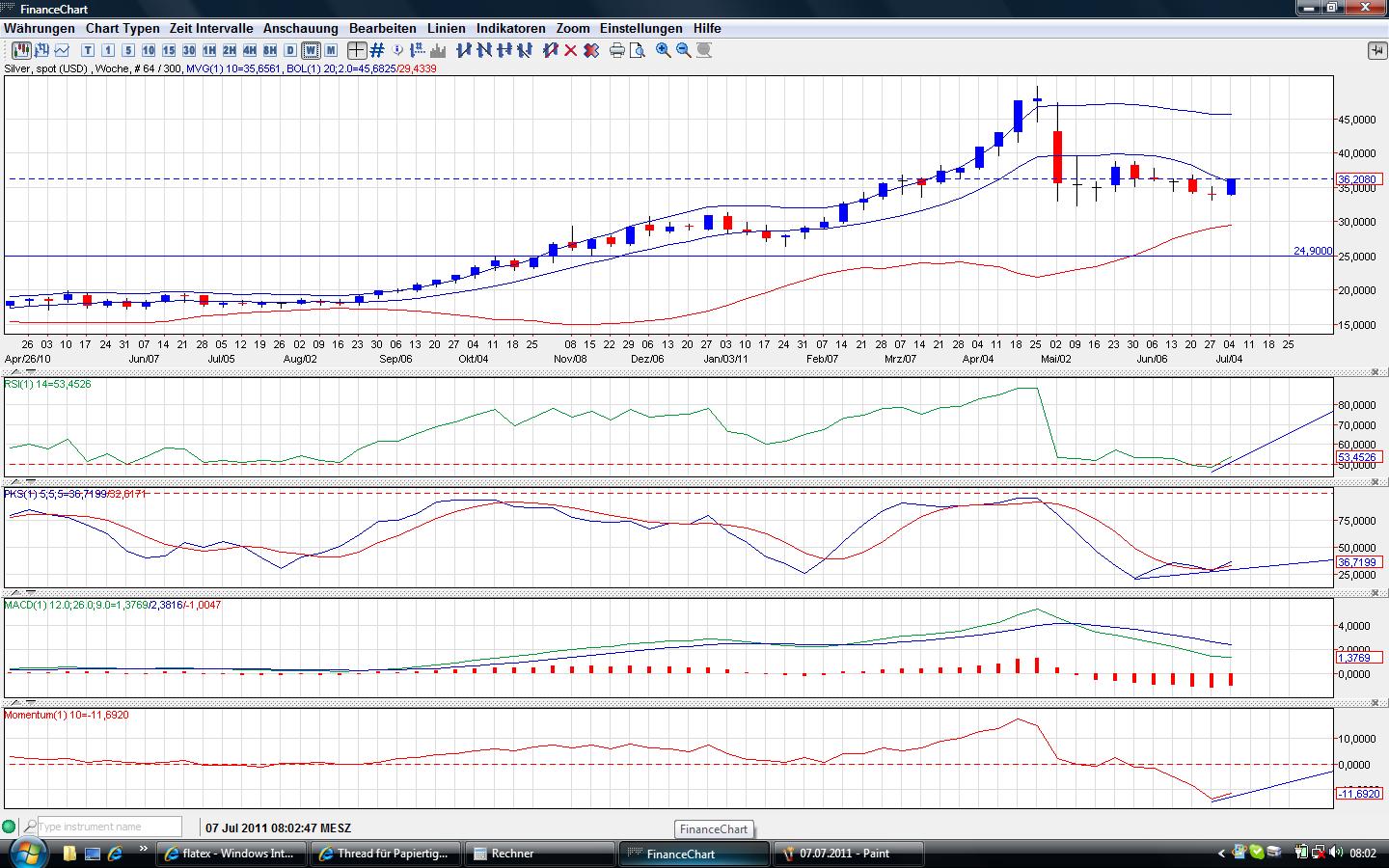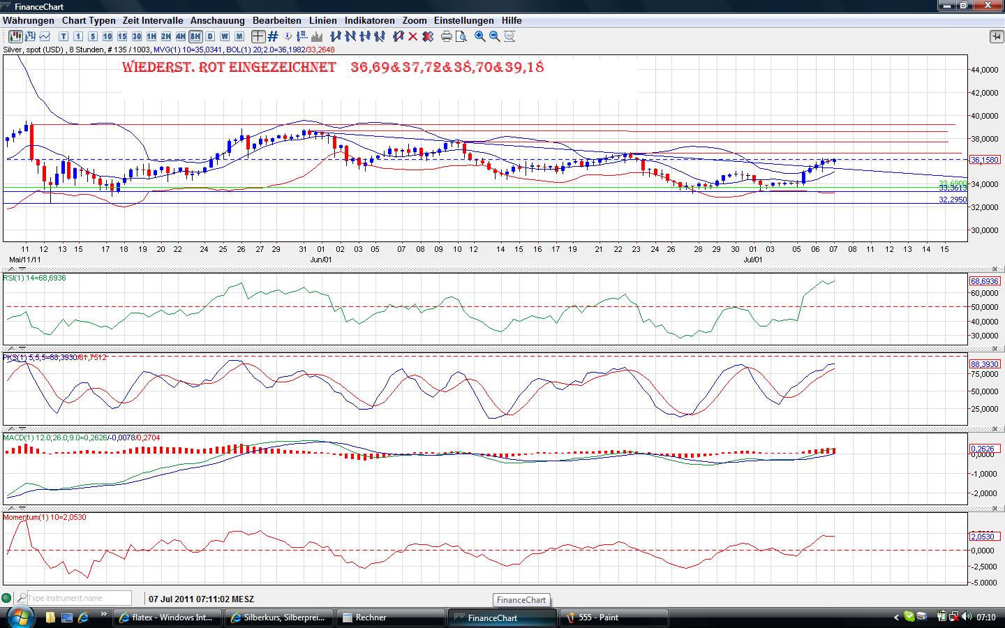 mein Bauchgefühl sagt mir, was nichts zu bedeuten hat, da ich sehr häufig falsch liege, dass wir heute noch auf 36,5 hochlaufen und dann, wie die letzten Wochen üblich, Donnerstag und Freitag wieder fallende Kurse sehen werden.