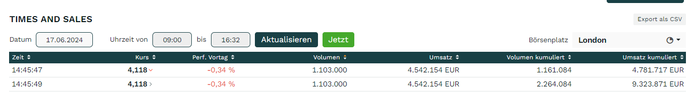 Wieder über 2 Mio Aktien in London gehandelt in zwei Trades.. Komisch, dass dies dann den Kurs 0 bewegt..