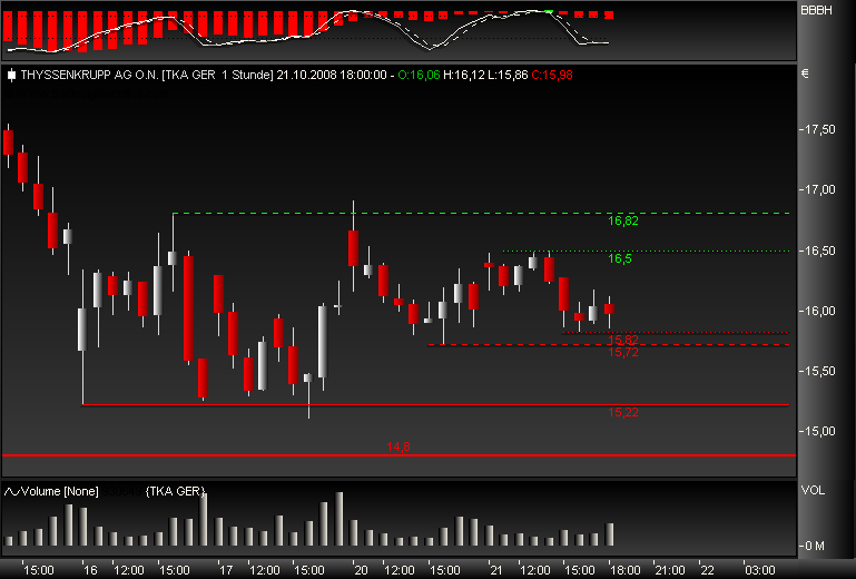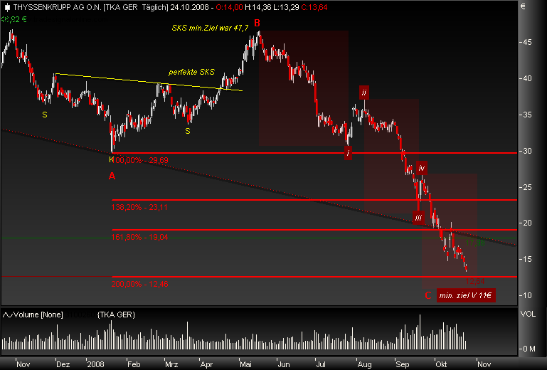 Die Kursralley, nicht nur bei Thyssen, wird kommen, noch im November geht es - hoffentlich - los. Dann spricht keiner mehr von Krise, denn alle haben wieder die $-$ in den Augen. Ich erwarte, das Barack Obama nächster Präsident wird, und das ist sehr gut, nicht nur für die Amerikaner, sondern für uns alle. Und die Kurse werden wieder steigen.