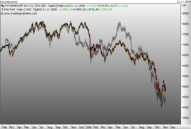 Auch wenn ich von der Börse nicht viel verstehe,dafür mehr von Poker so würde ich mich freuen wenn die Aktie weiter in den Keller rutscht.Denn dann ist eins sicher:mein ganzes Geld welches ich bei TKS bekomme stecke ich in die Firma wieder rein!