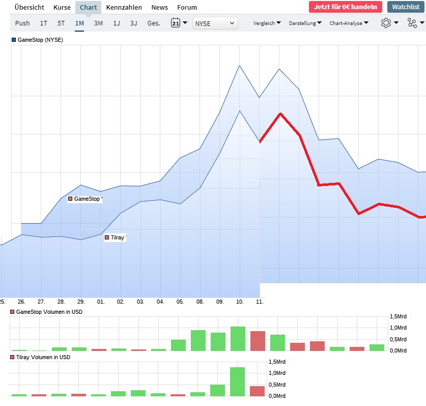 Aber da ich immer noch an die volle Legalisierung in den USA glaube, habe ich abgewartet. Allerdings musste jetzt TILRAY über 1500 % steigen, damit ich wieder bei NULL bin.