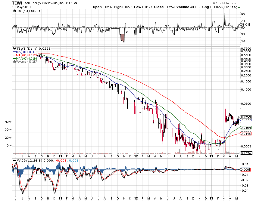 Wed, May 22, 2013 12:00 - Titan Energy Worldwide, Inc. (TEWI: OTC Link) - Tier Change - The symbol, TEWI, no longer is classified as OTC Pink Limited.