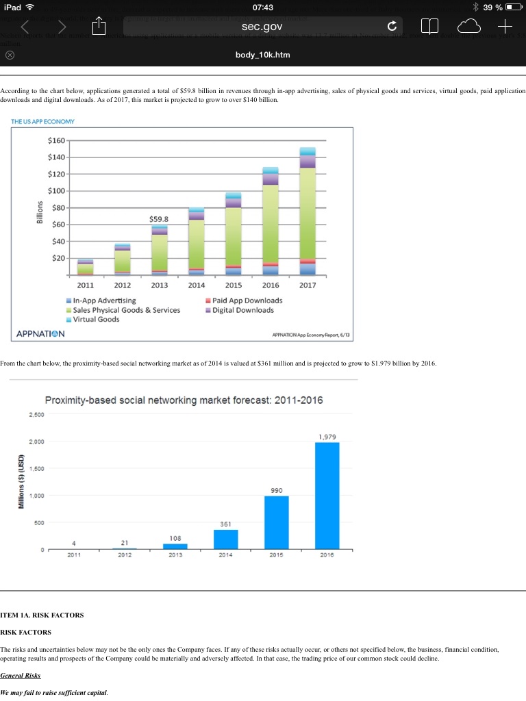 The company's users will be provided with "local" options of many kinds, enabling mobile distribution of locally relevant content and special offers. The company hopes to bring together a dynamic opportunity for brands, advertisers and merchants to interact in new and innovative ways with the iHookup Social Network, while building customer loyalty, engagement and revenues. The company is pursuing its growth in its current "dating vertical" market, as well as expanding its reach in the general audience category of "Social Networking."