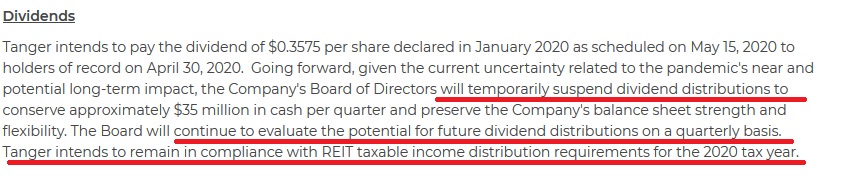 ... ist ein Familienunternehmen, das vom Sohn des Gründers, Steven B. Tanger, geleitet wird. Seit Januar angeheuert als President und COO ist Stephen Yalof, der vormals bei Simon Property als CEO gearbeitet hat. Stephen Yalof ist in der Branche, soweit ich es recherchieren konnte, sehr anerkannt und gut vernetzt. Ich hoffe und nehme es auch an, dass er jetzt den Laden gut aus der Krise herausführen wird.