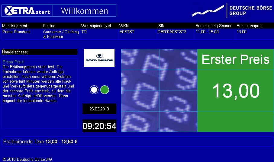 Handelsbeginn 26. März 2010